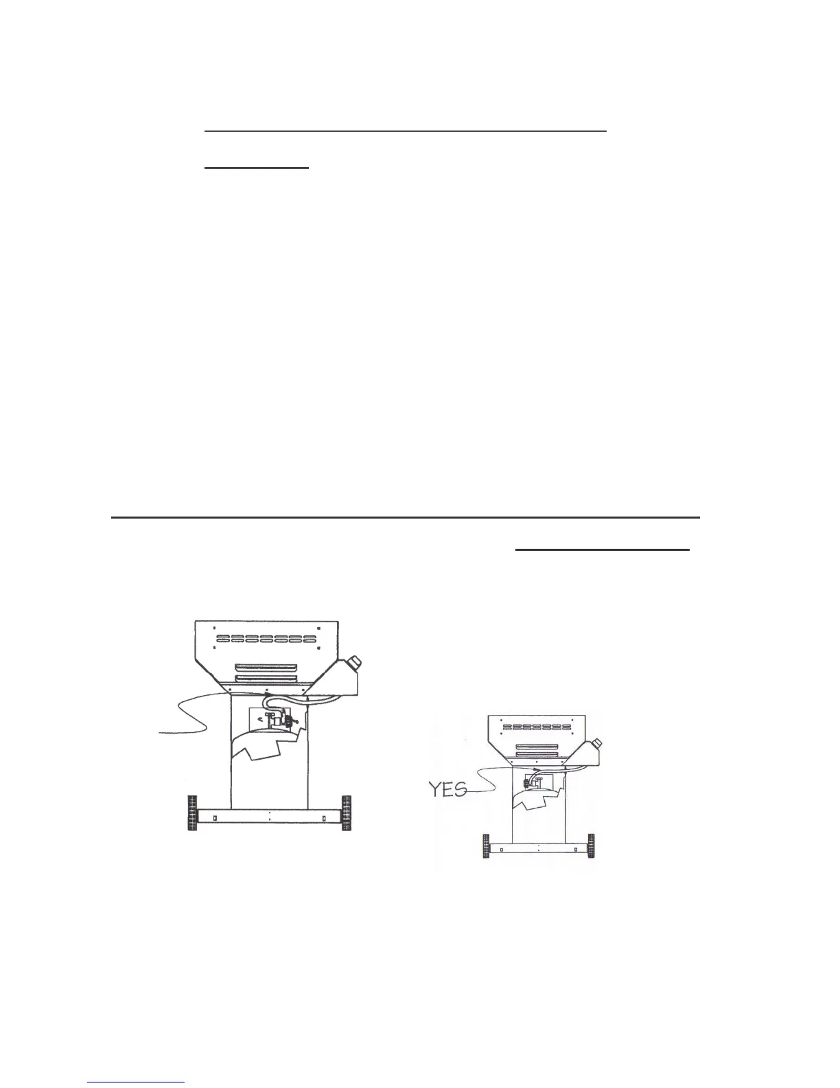 leaks and make sure hoses are not touching bottom of grill. See Example A.