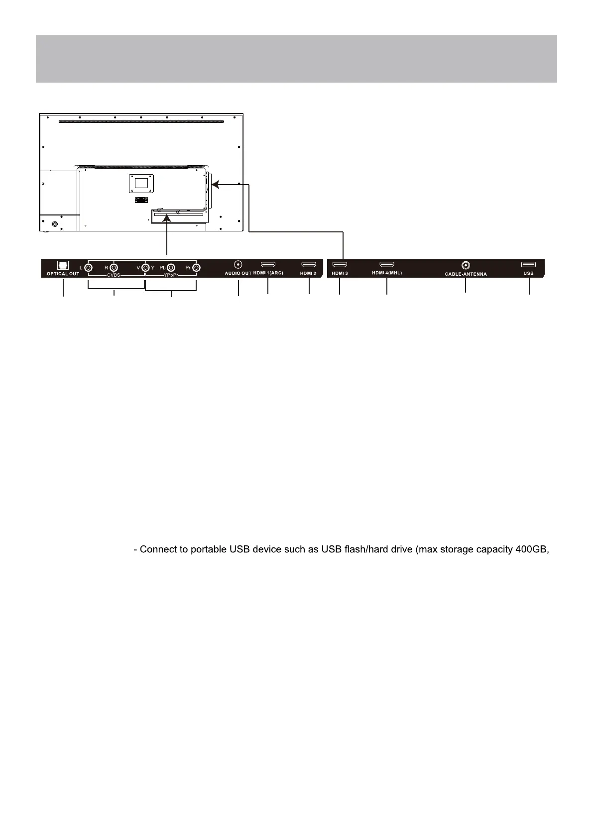 Note: MHL compatible devices can be connected to HDMI4 via a HDMI-to-MHL adapter (not included).