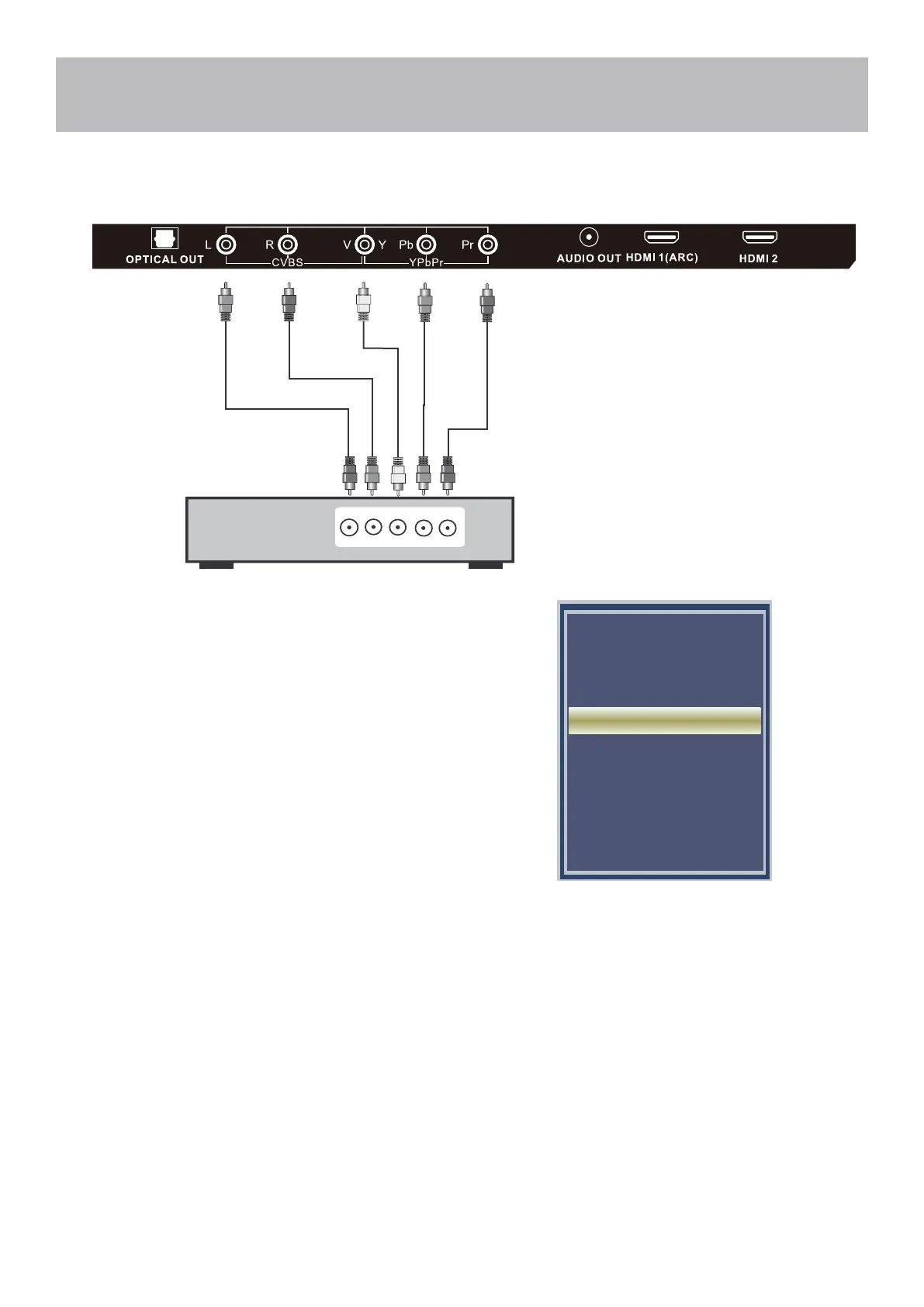 Match and insert the green (Y), blue (Pb), and red (Pr) cables into