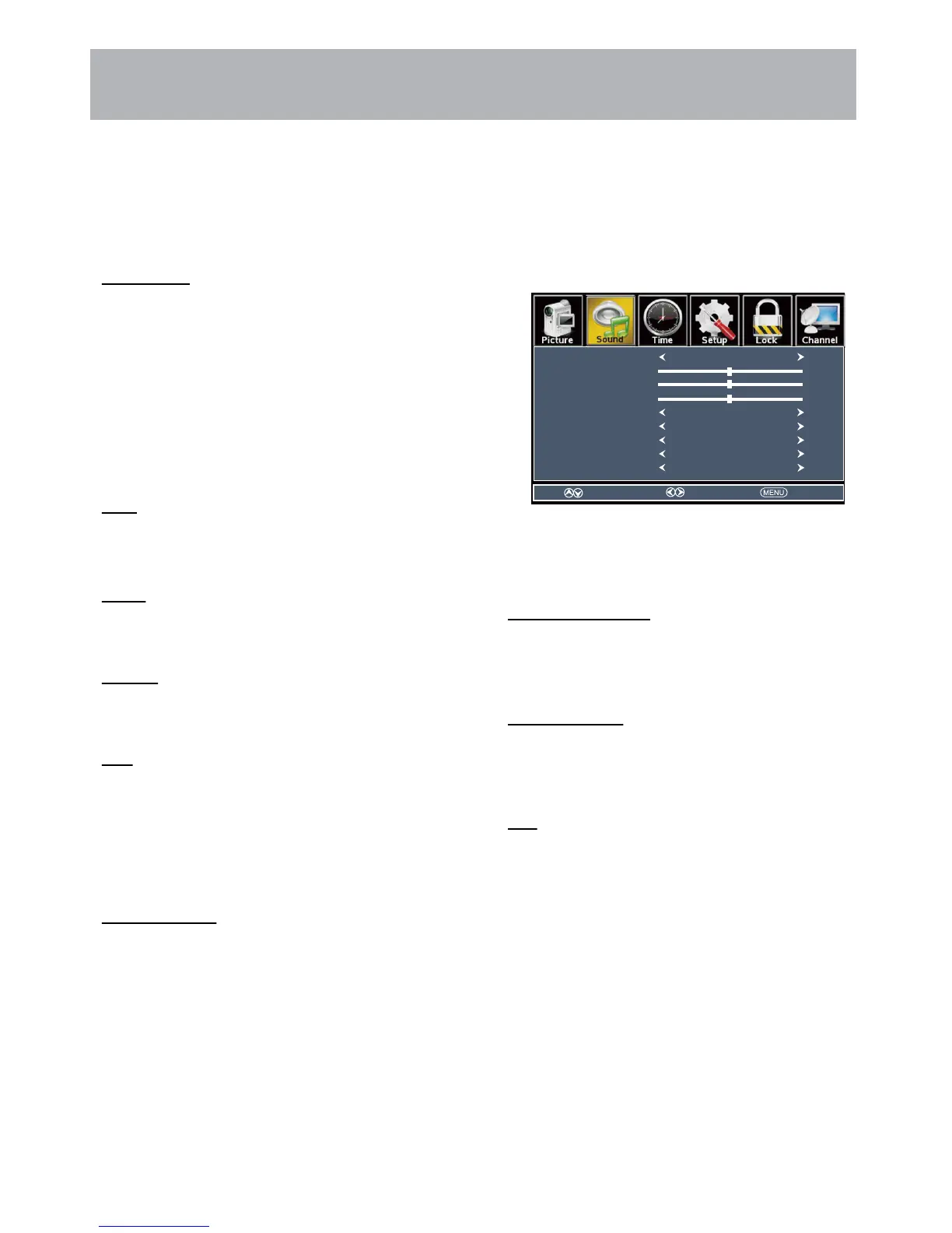 Press the MENU button on the remote control. Navigate using t u arrow buttons to select Sound. Press the q arrow