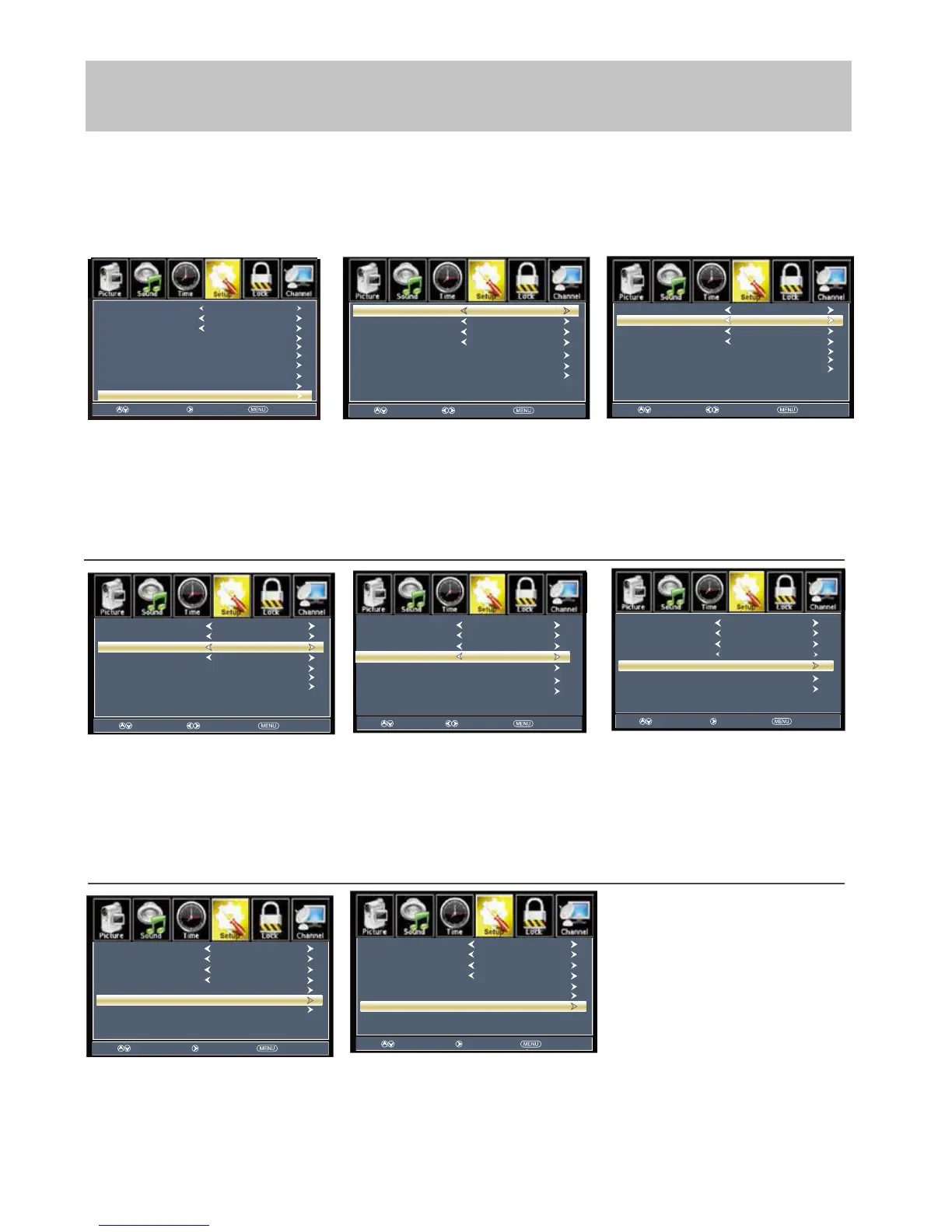 Press the MENU button on the remote control. Navigate using arrow buttons to select Setup