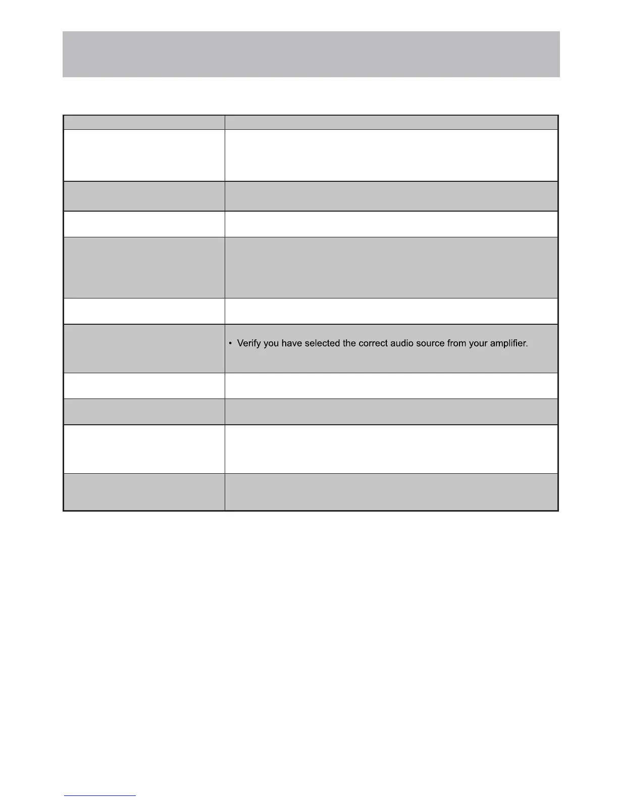 No sound • Check that connected audio cables are completely inserted.