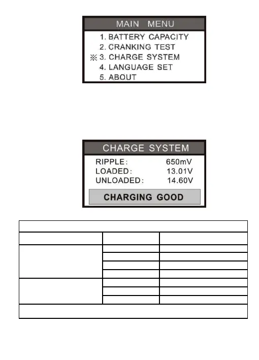 5-3-3. Press <ENTER> to Charging Test interface. Start engine