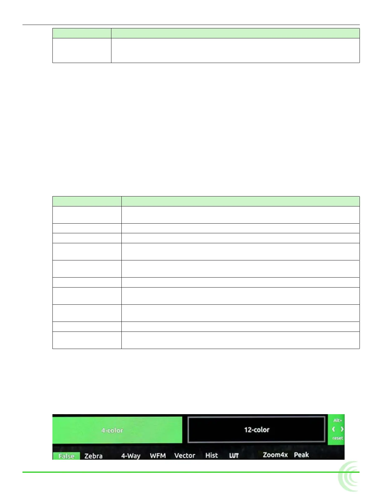 Zebra The Zebra menu displays settings and related options for zebras 1 and 2.