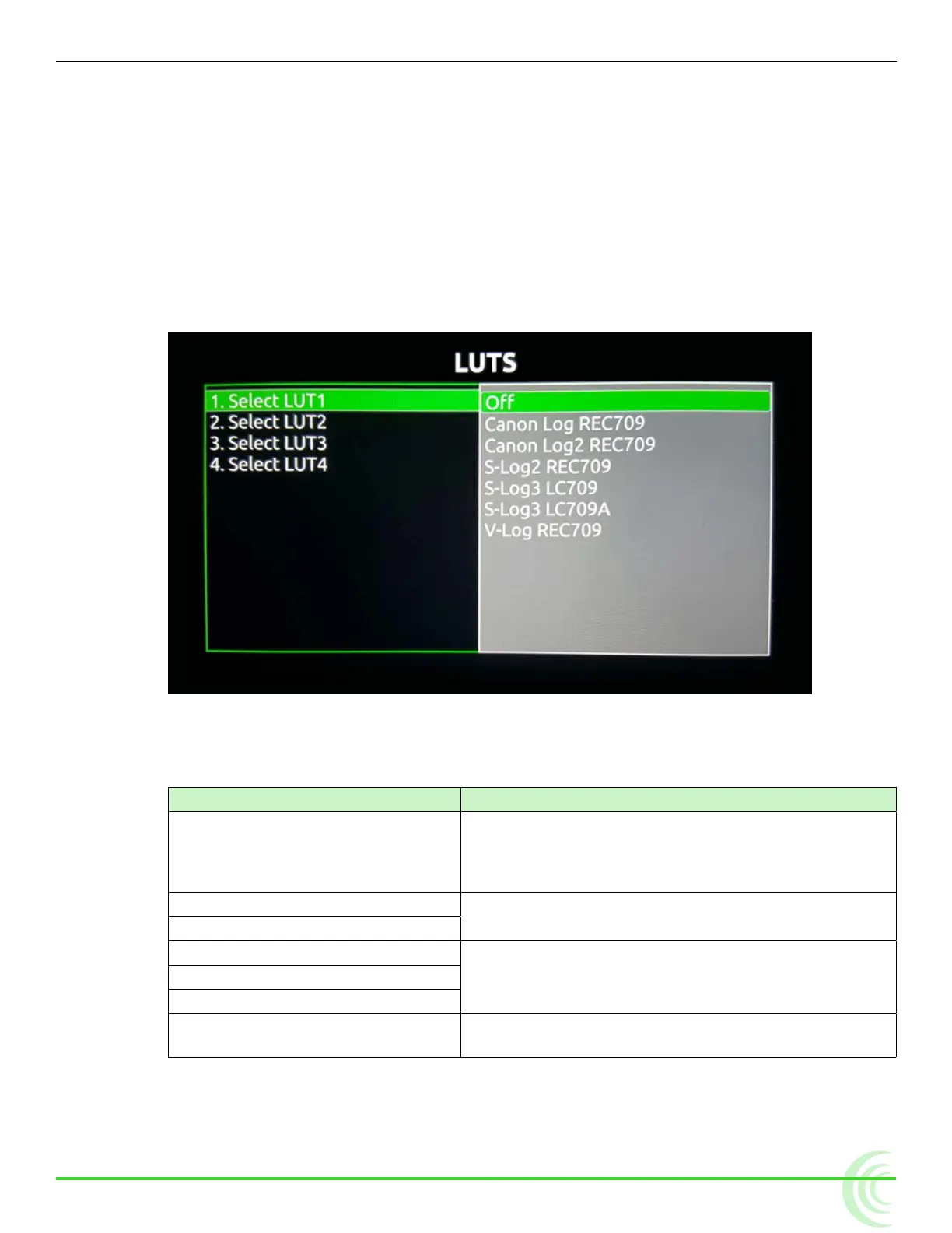 3. Dene each of the four options: LUT1, LUT2, LUT3, LUT4 by selecting from