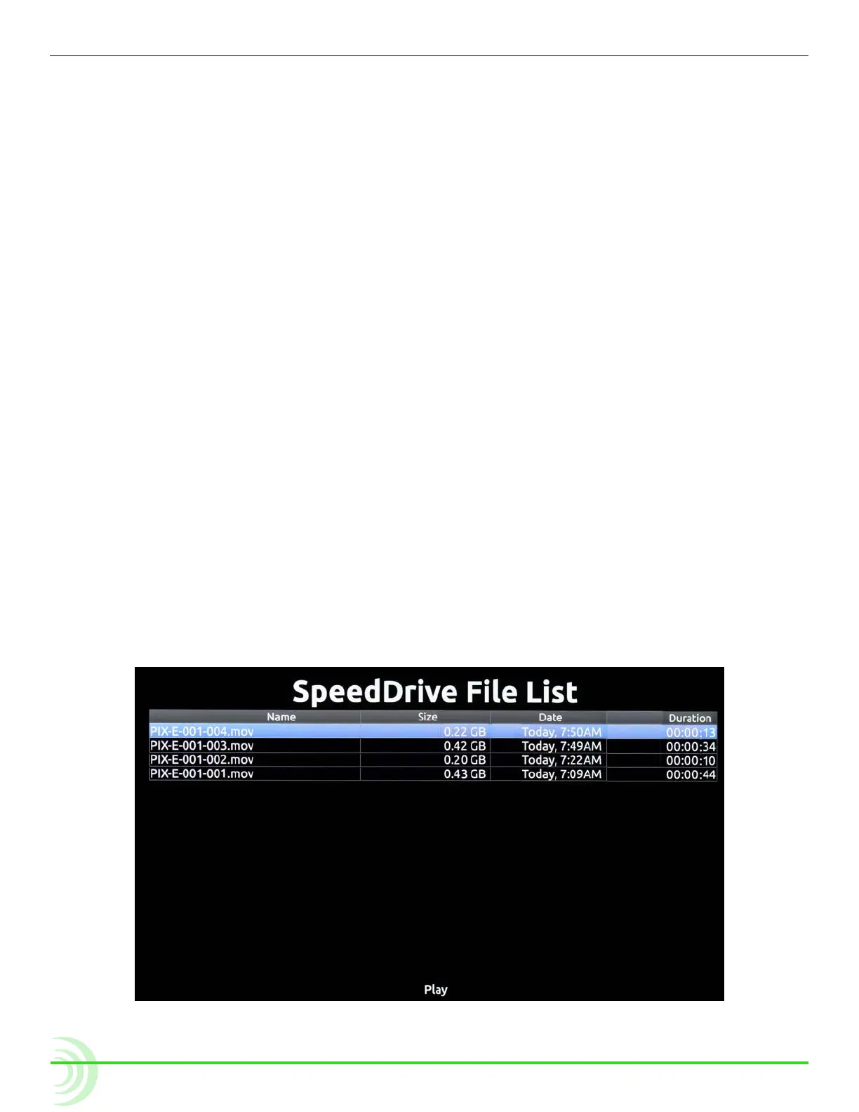 Files recorded on the monitor are compiled in the SpeedDrive File List, as a list