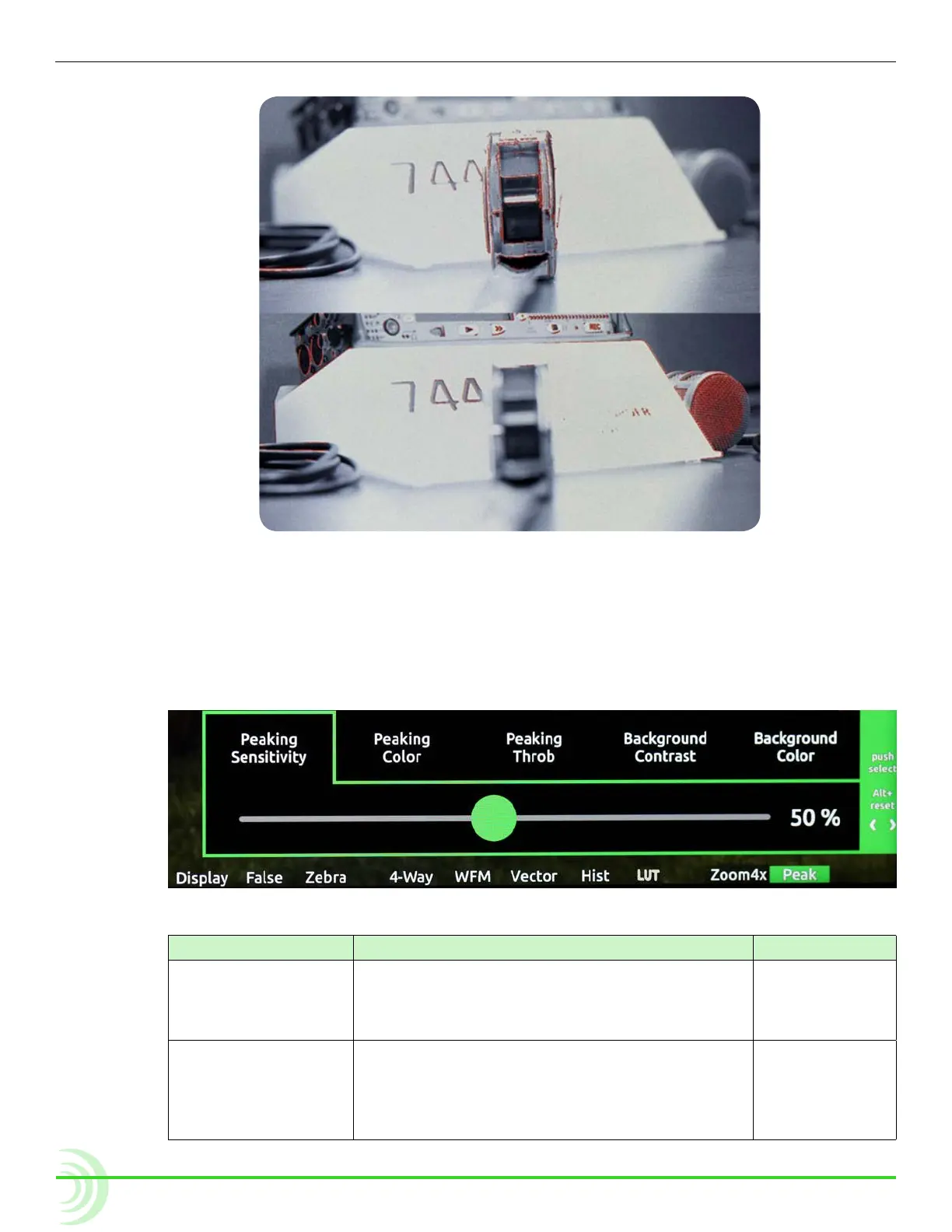 Peaking Sensitivity Use to dene the sensitivity level for peaking.