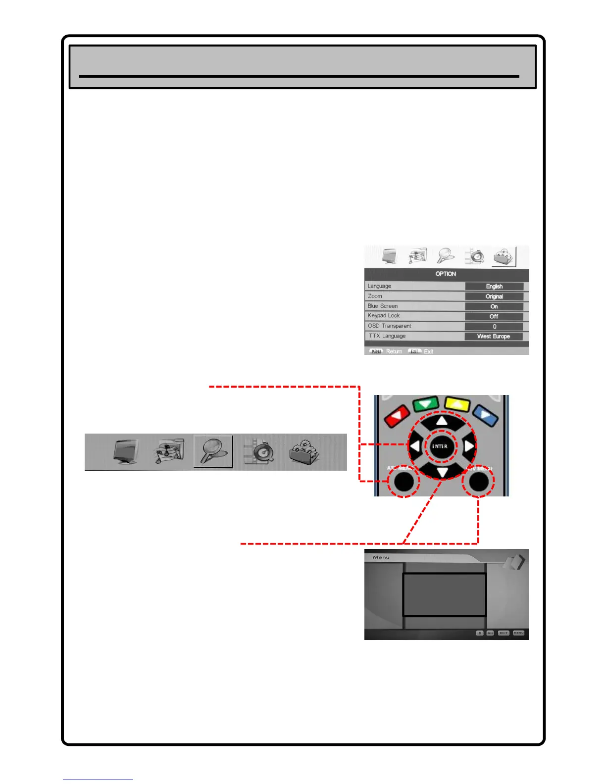 The On Screen Menu’s are very easy to operate, simply use the ARROW keys and ENTER key on the remote control to