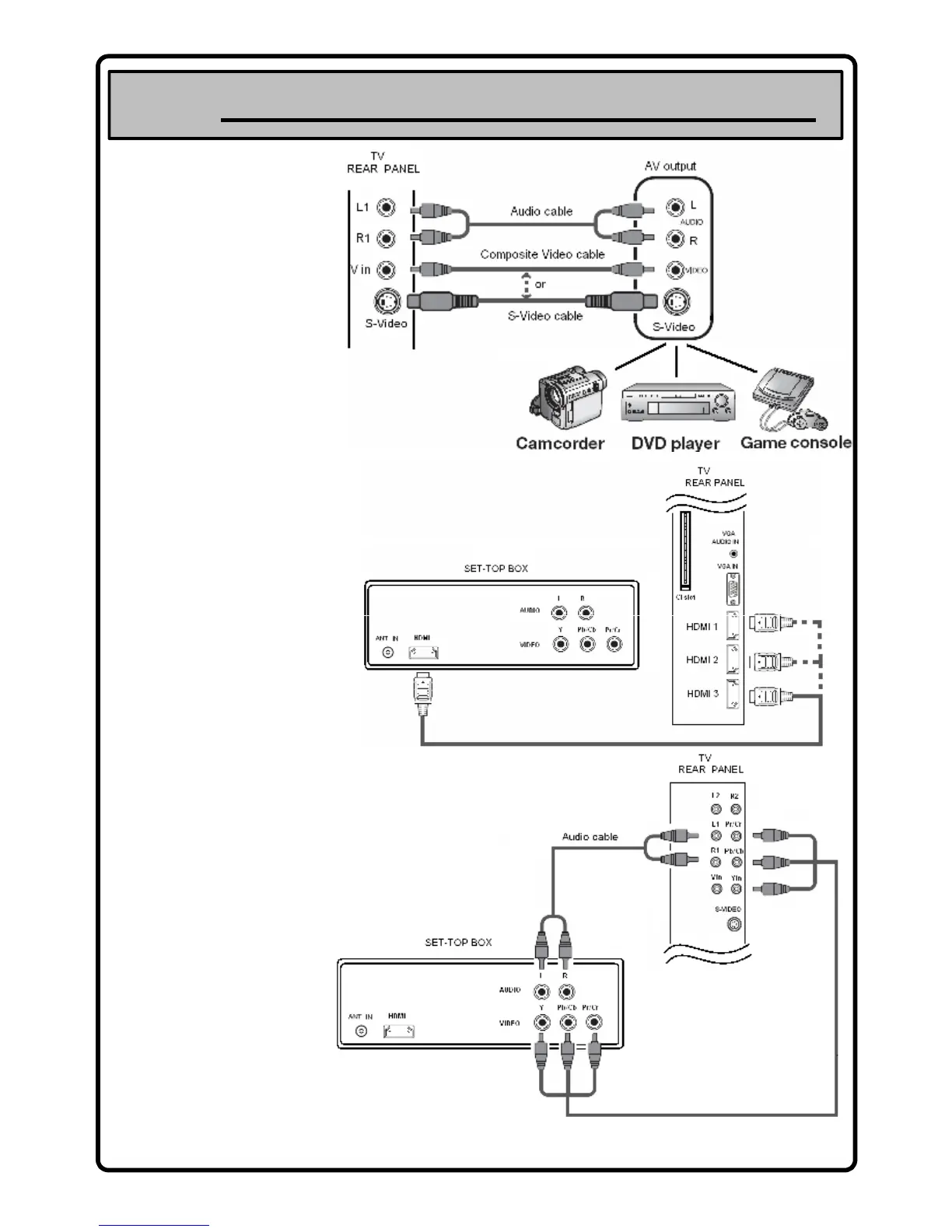 Connect an HDMI Cable (Not supplied) between the HDMI IN (1, 2, or 3) jack on