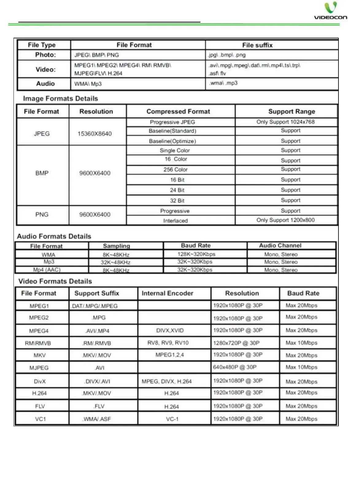 MULTIMEDIA SUPPORT SPECIFICATIONS
