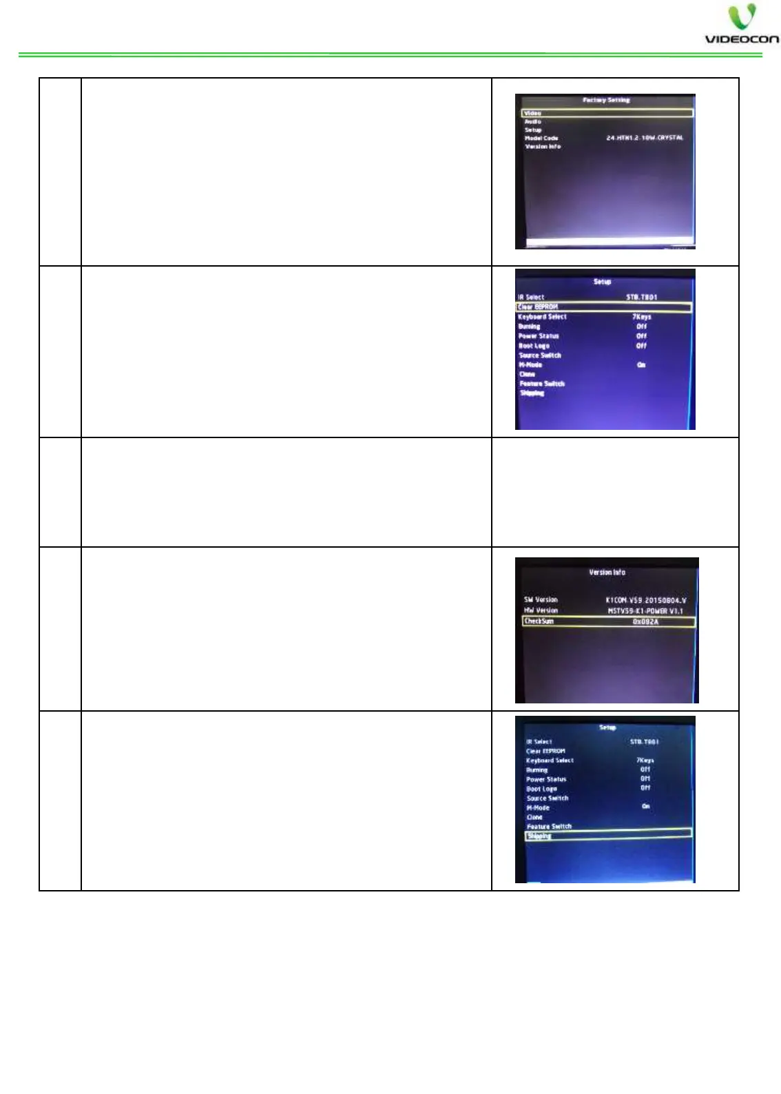 EEPROM option and press OK key of remote.