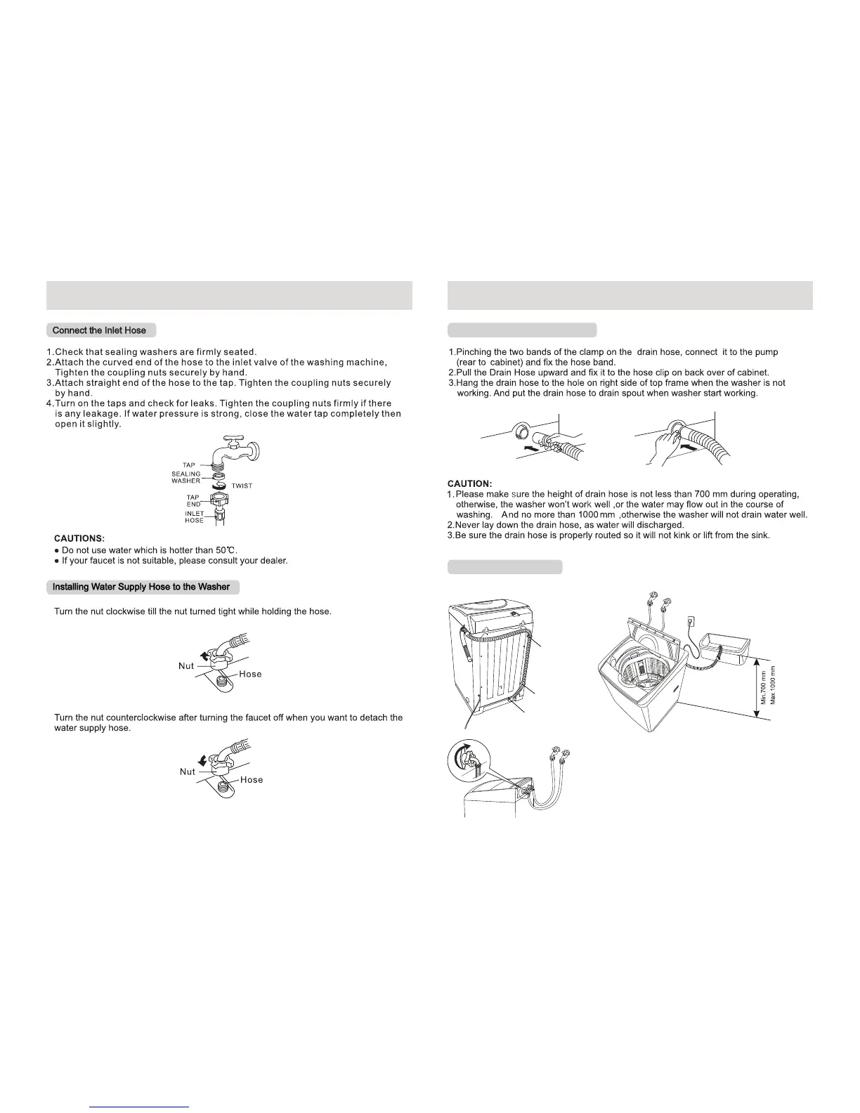 Videocon DIGI NEMO - Connecting the Inlet Hose; Securing Water Supply Hose; Installing the Drain Hose