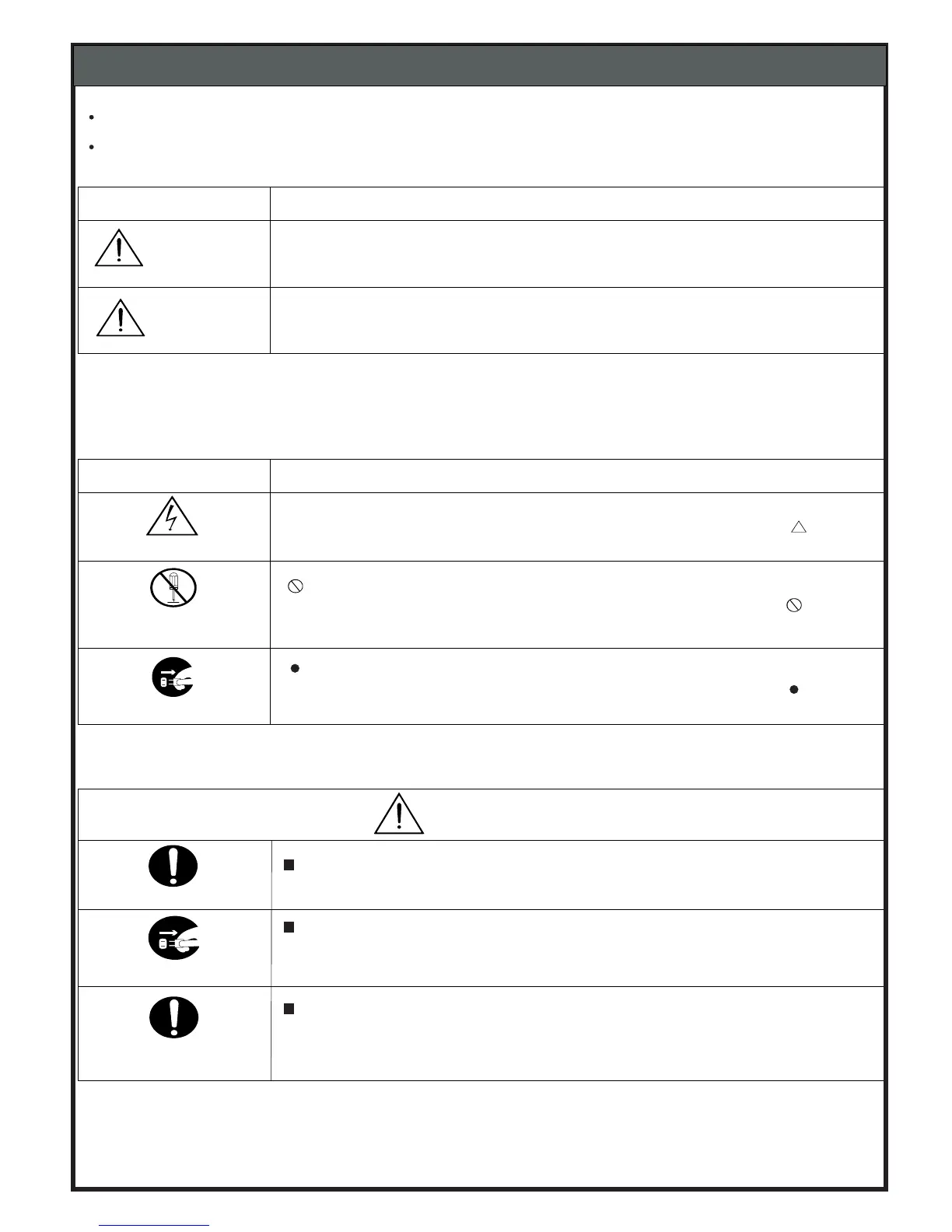 Symbol left warns to unplug the power cord.