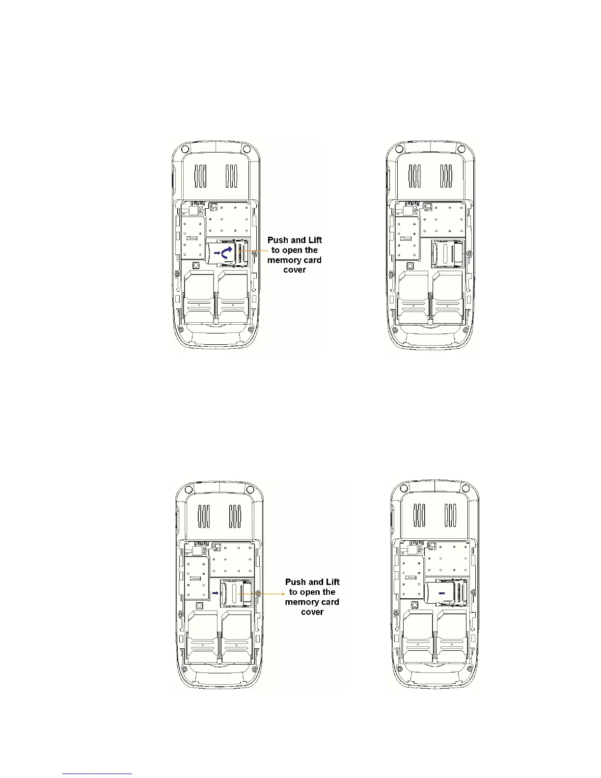 iv. Place the memory card into memory card slot with the metal connectors of the memory