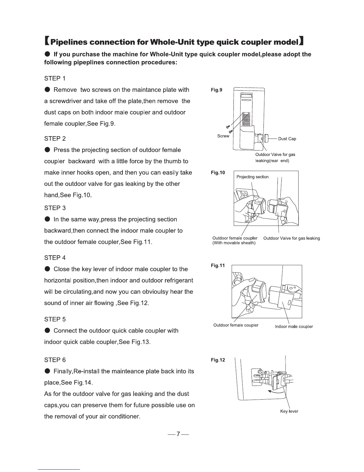 Videocon VS5C3 Series - Pipelines Connection for Whole-Unit Type Quick Coupler Model; Connection Procedure for Whole-Unit Quick Coupler