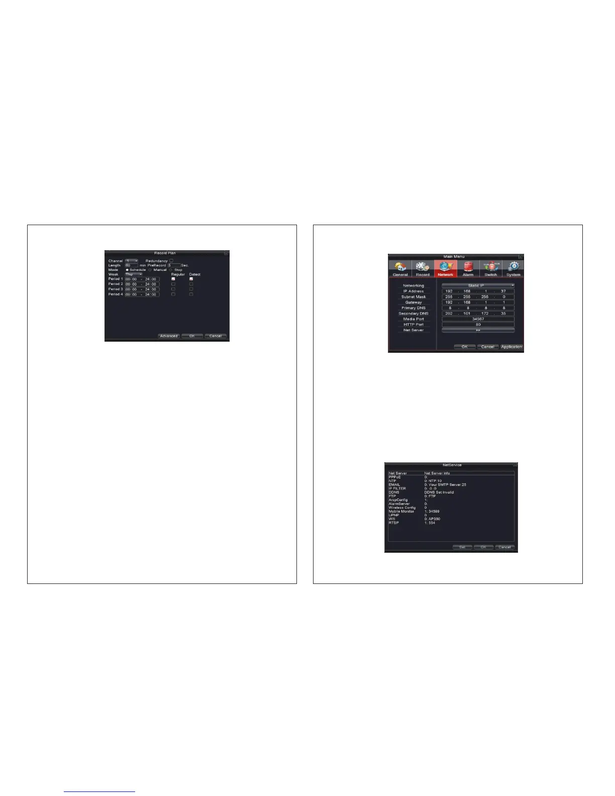 Manual: after choosing manual button, the related channel will carry common recording