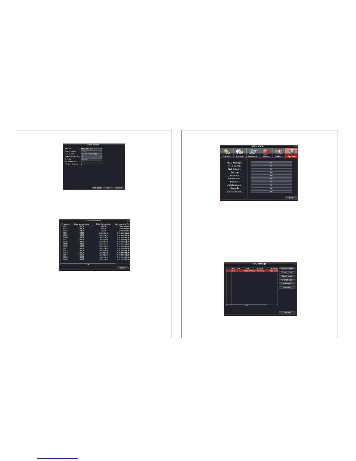 Set the system parameters such as HDD Manage、PTZ Config、GUI Display