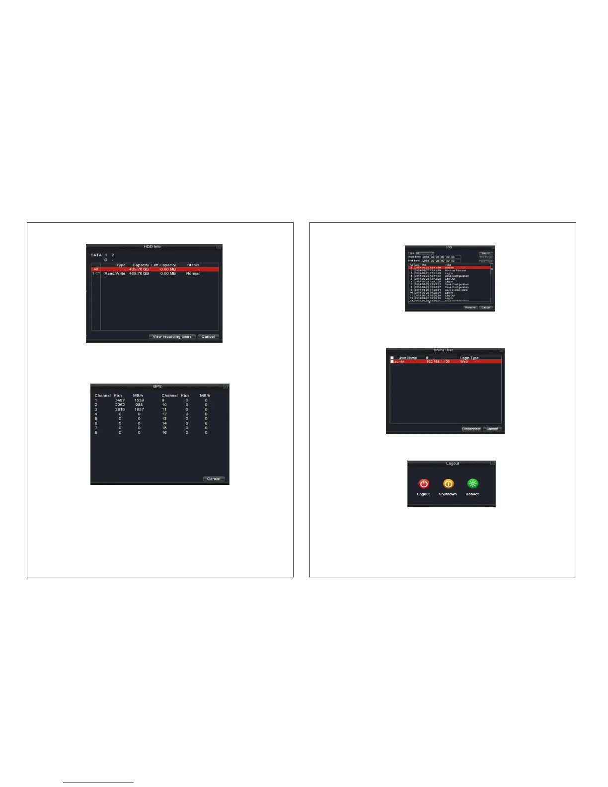 Displays the code stream Kb/S and hard disk capability MB/H in real time.