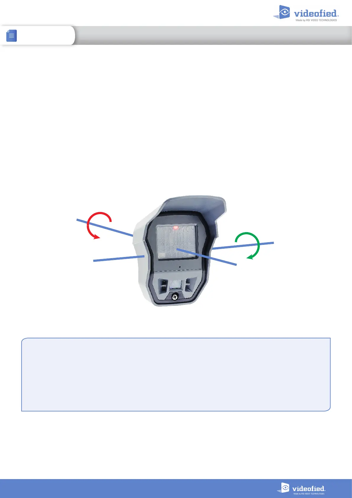 changed on its transverse or longitudinal axis, a tamper alarm is sent to the panel. As for every Videofied device,