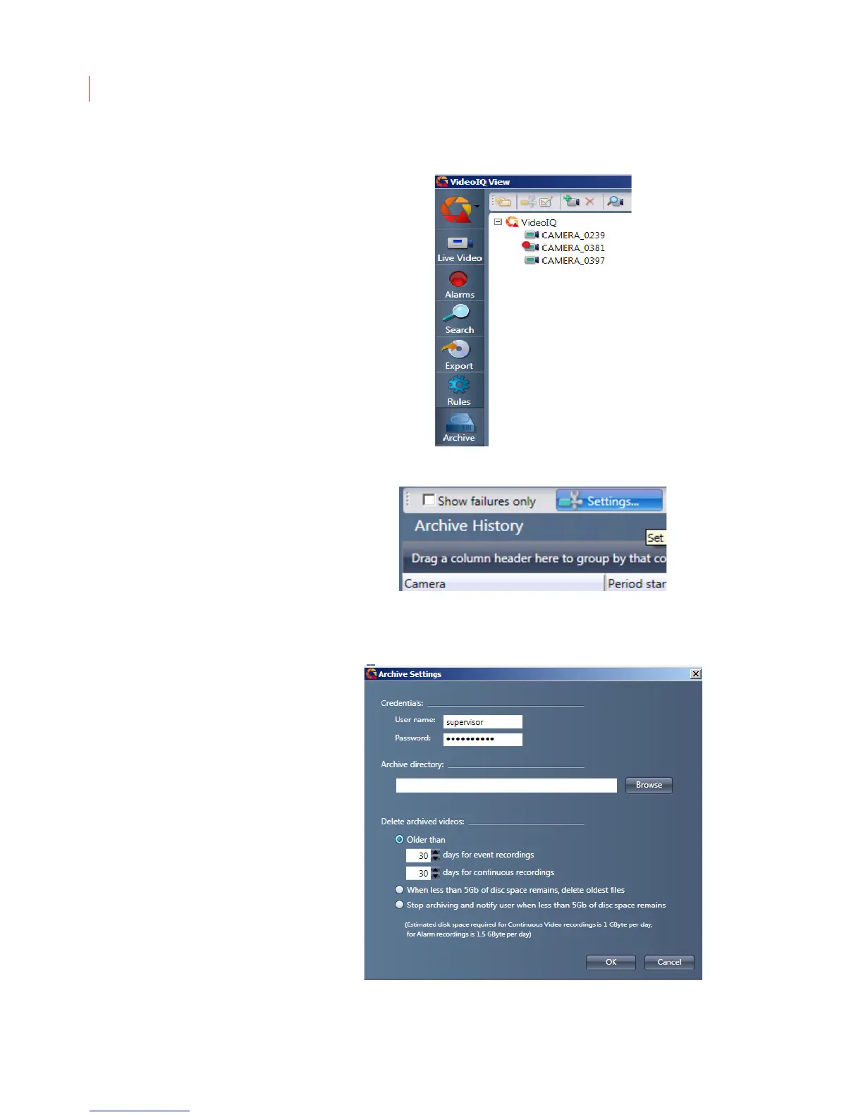 cameras where archiving will occur.