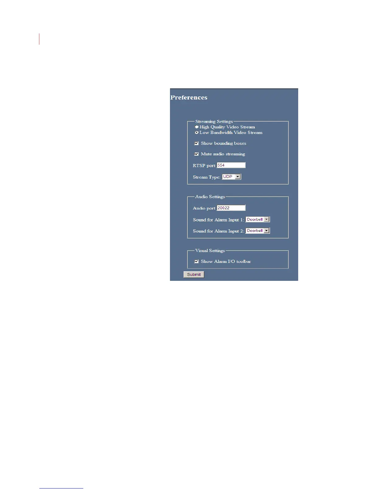 Enable audio streaming by unchecking the Mute audio streaming box.