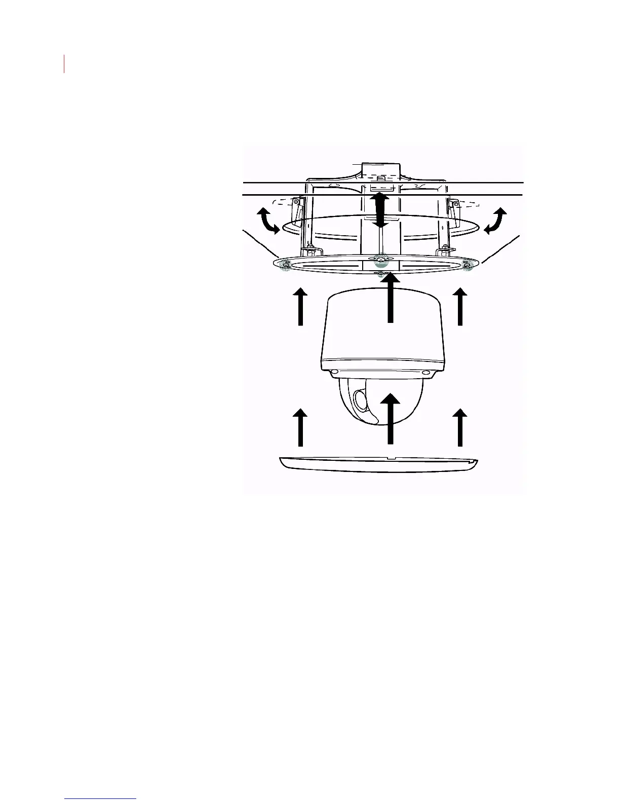 7. Place the trim ring over the dome of the camera, aligning the locking tabs with