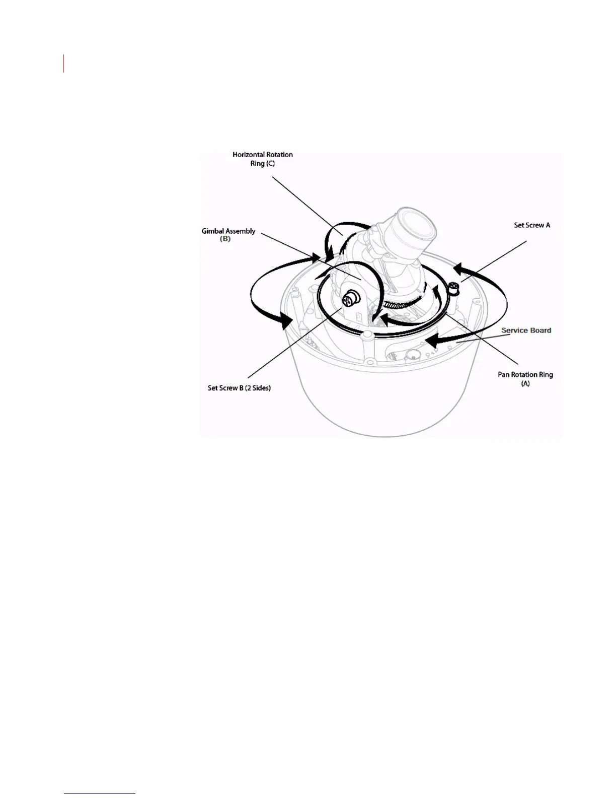 3. Loosen set screw B on either side of the gimbal assembly, tilt the lens to the