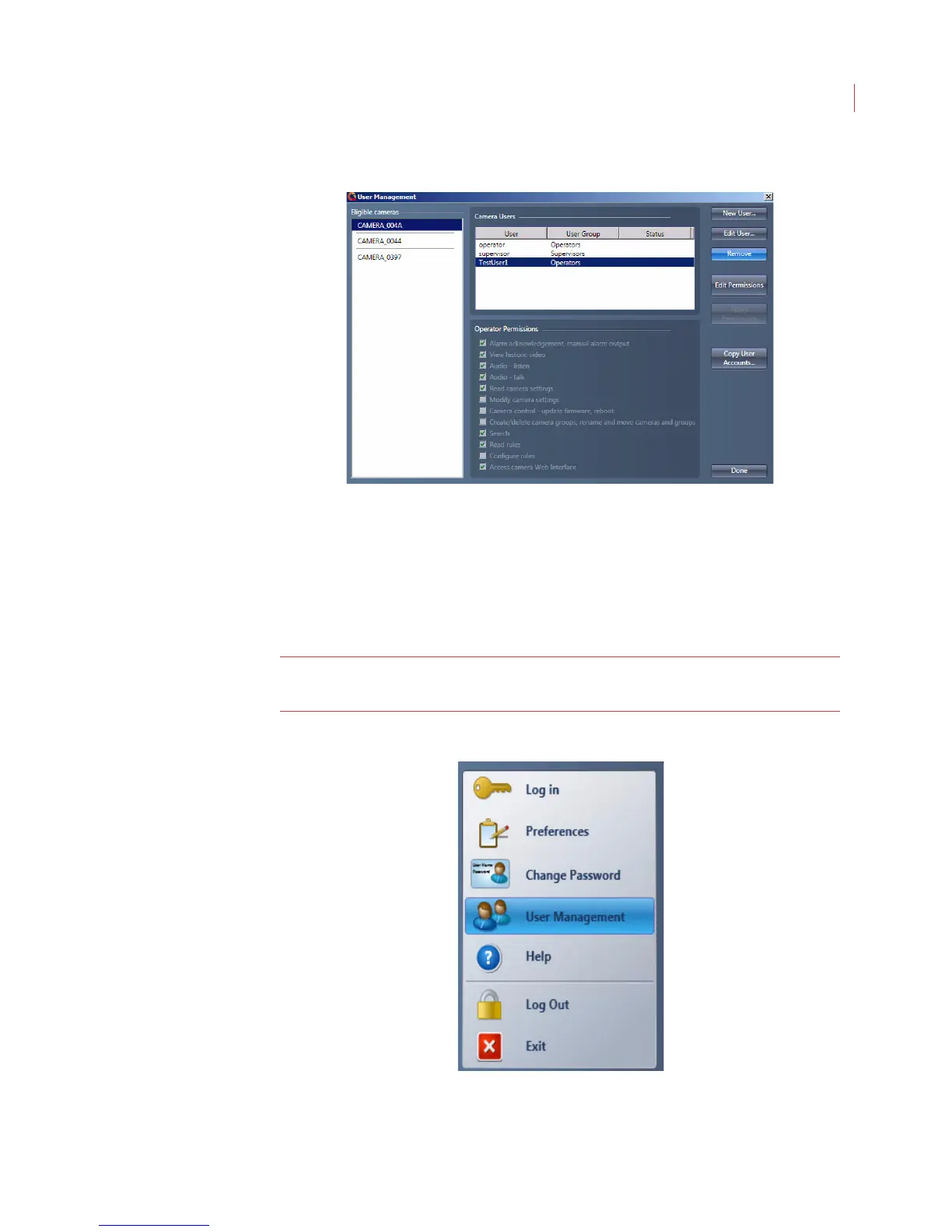 users on the selected camera(s) with the Operator role.