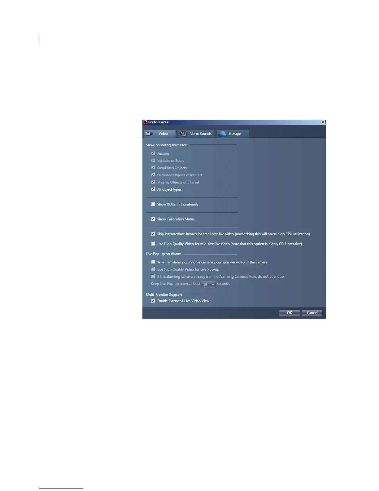 Use the Video tab to determine which types of objects you want to see bounding