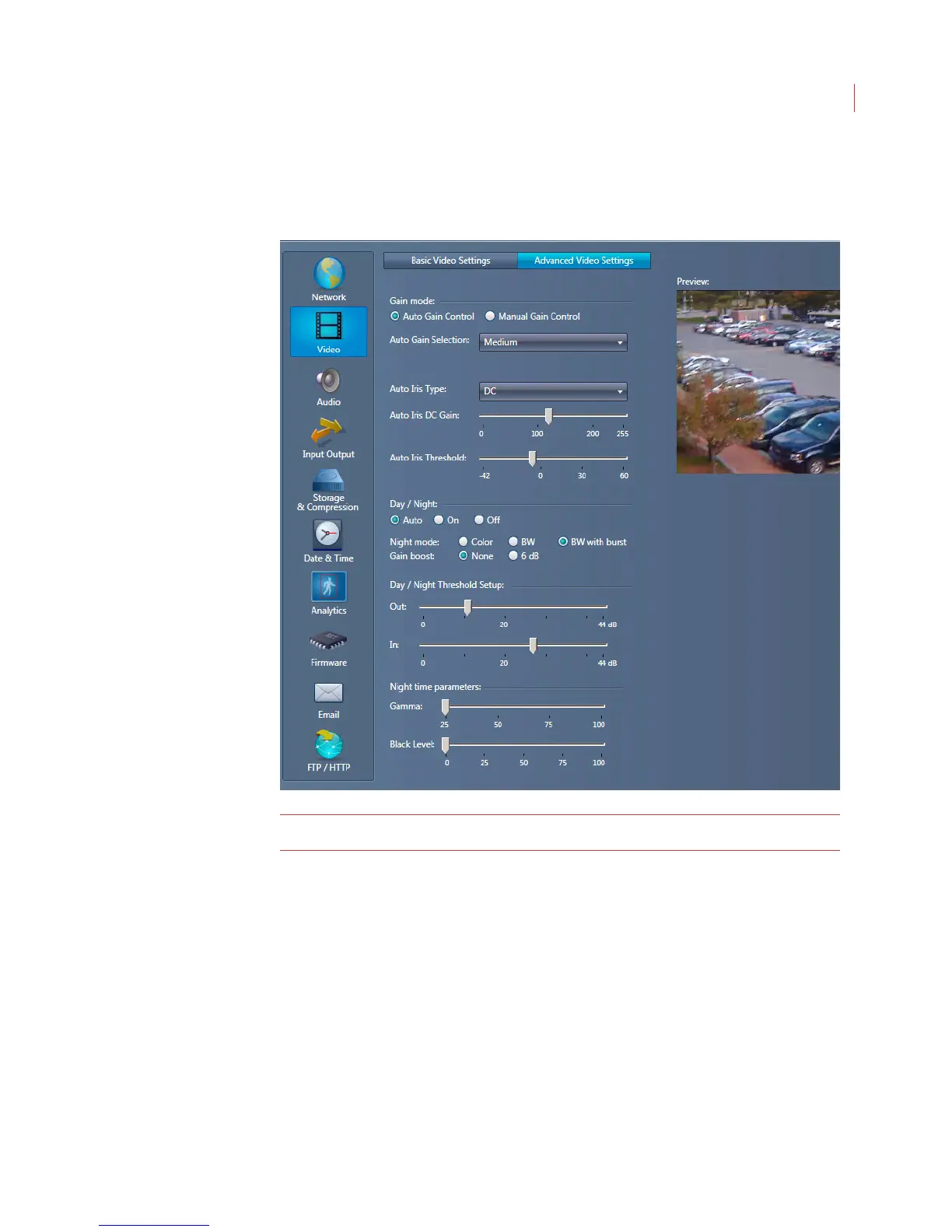 Auto Iris Threshold: Sets the exposure system gain value (in dB) at which the