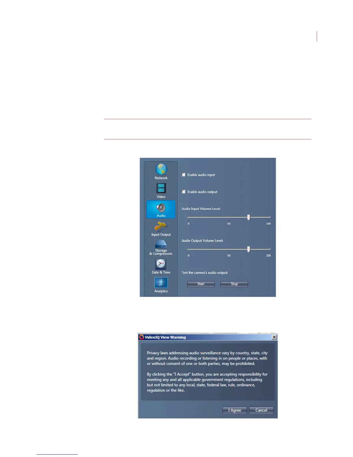 This section describes how to configure the audio input and output features of the