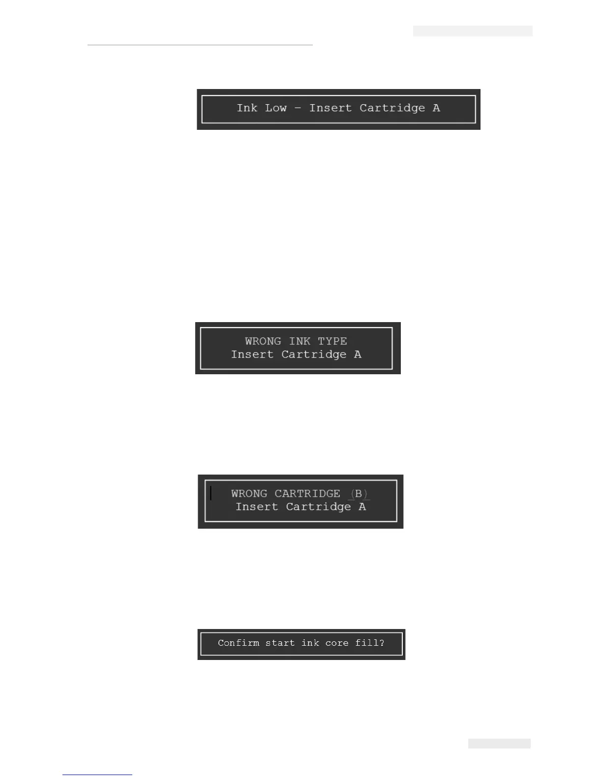 2 Insert a new ink cartridge A. The printer initiates Fill Ink Core sequence