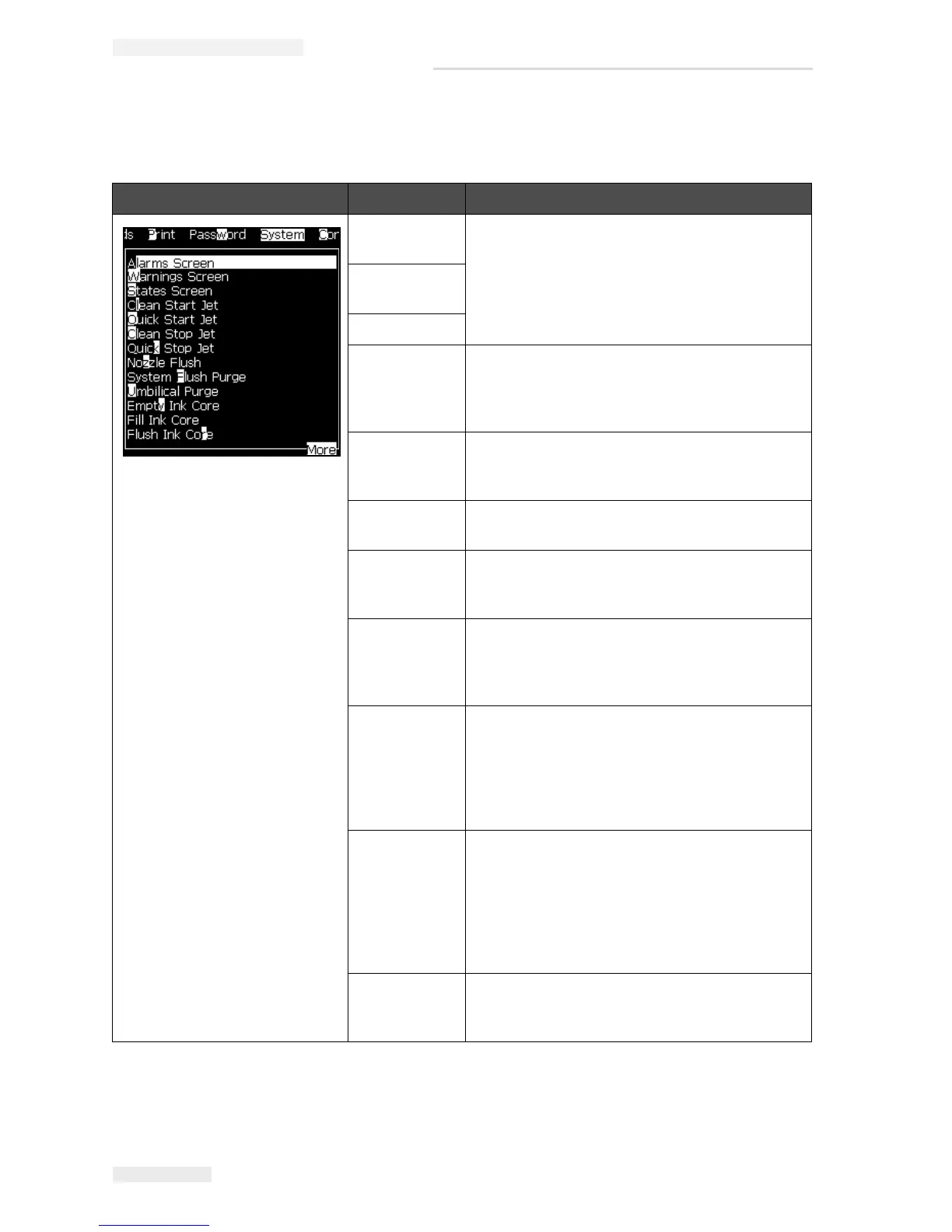 Table 5-8: System Menu and Commands