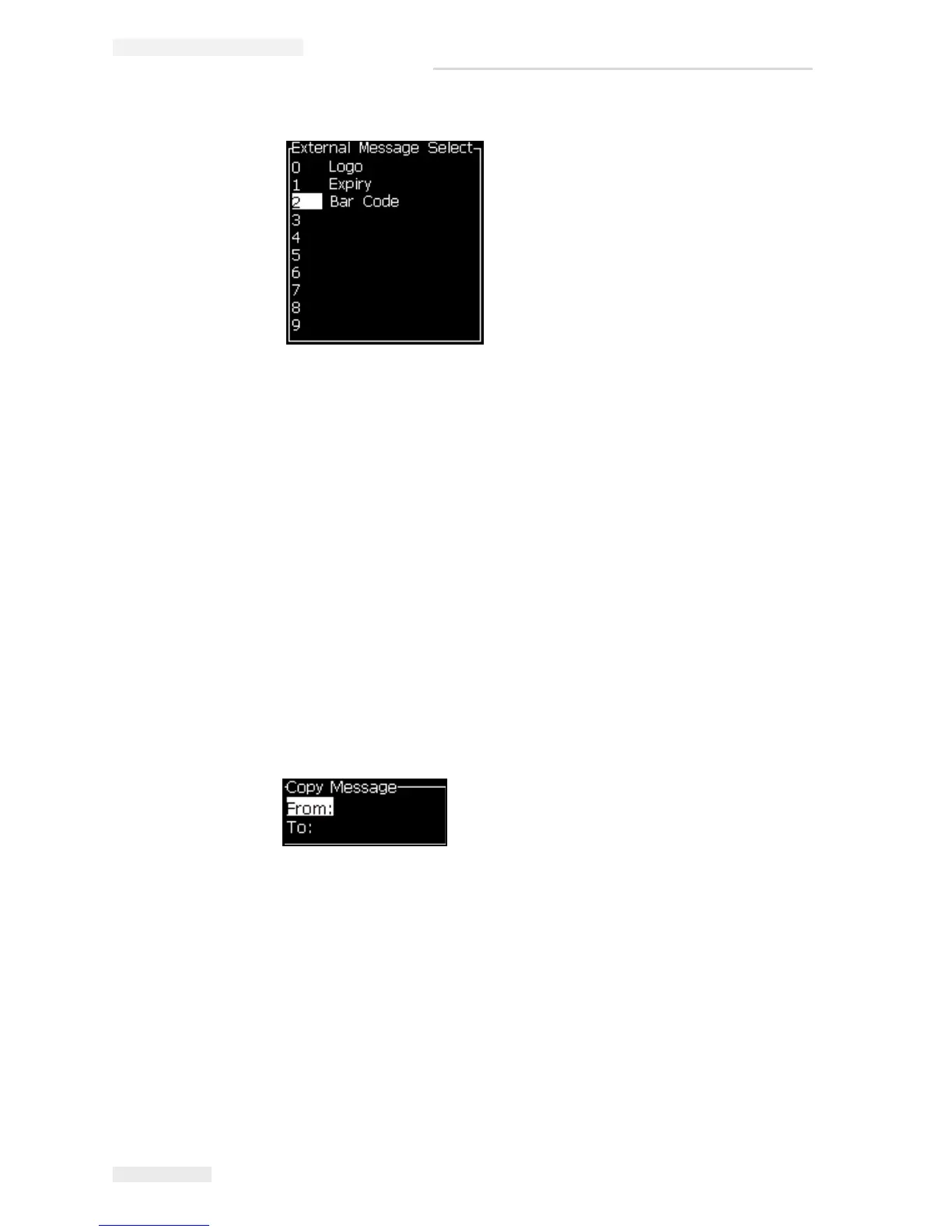 5 Press the Enter key to copy the message and return to the Menu screen.