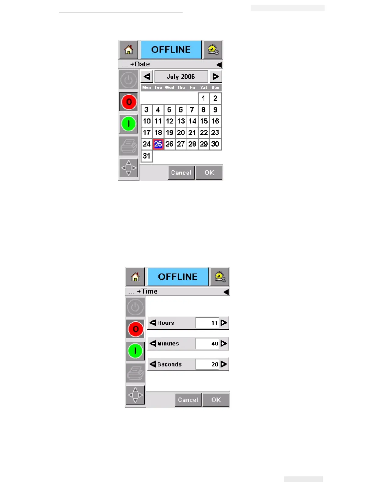 9 Touch Time to set the time. The time set page appears, as shown in