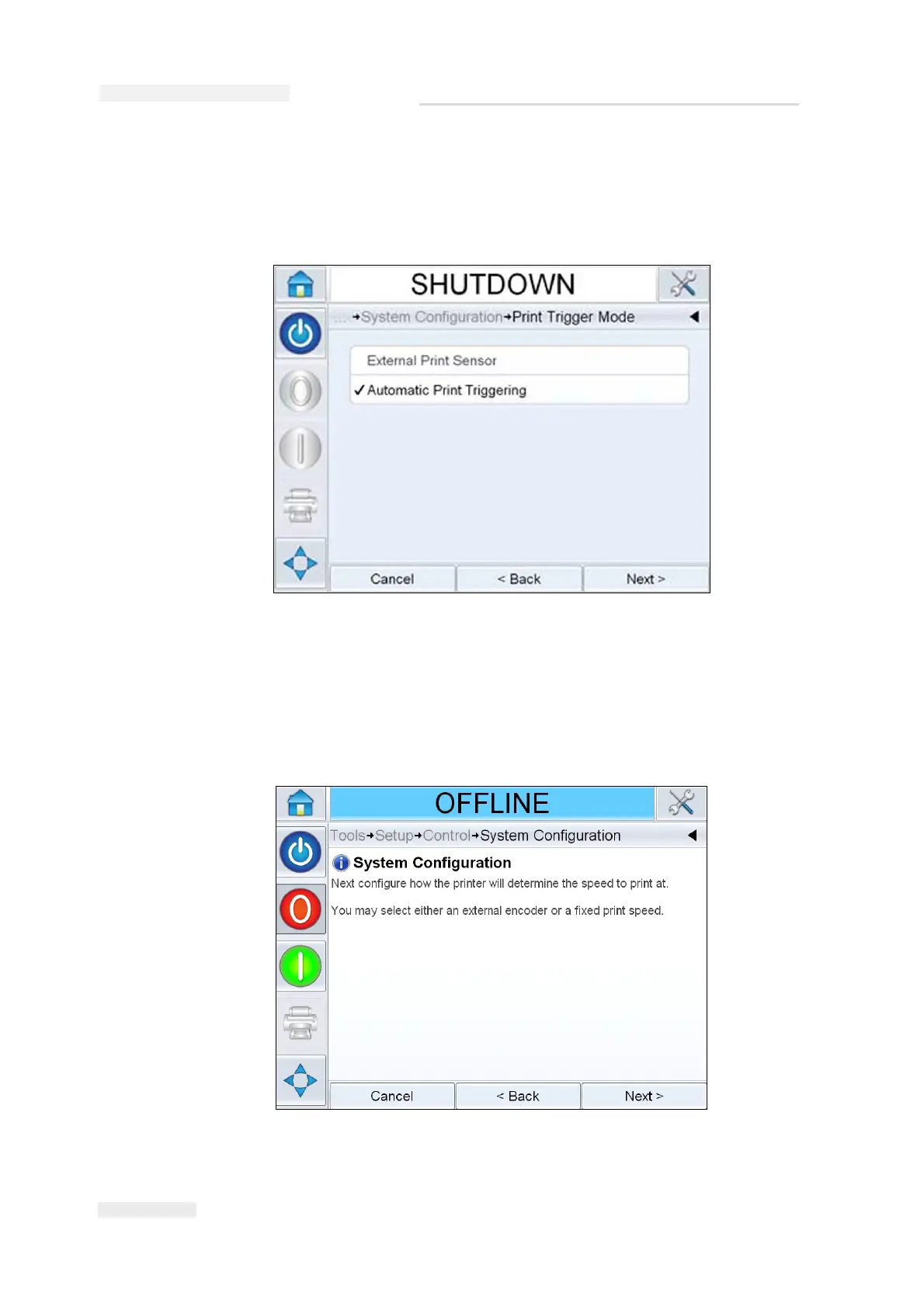 6 Touch Next, to set up the print trigger mode.