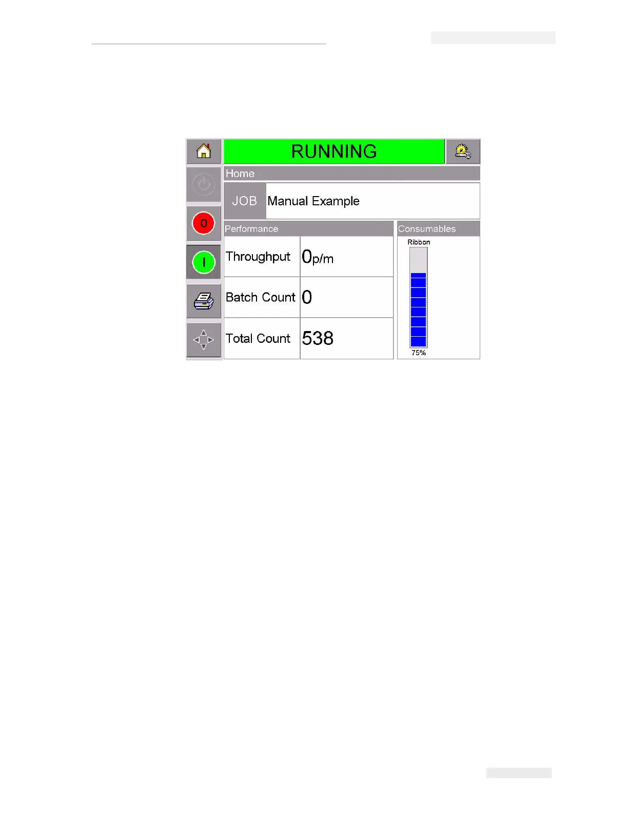 Note: If the printer has a fault or a warning, RUNNING will be replaced with