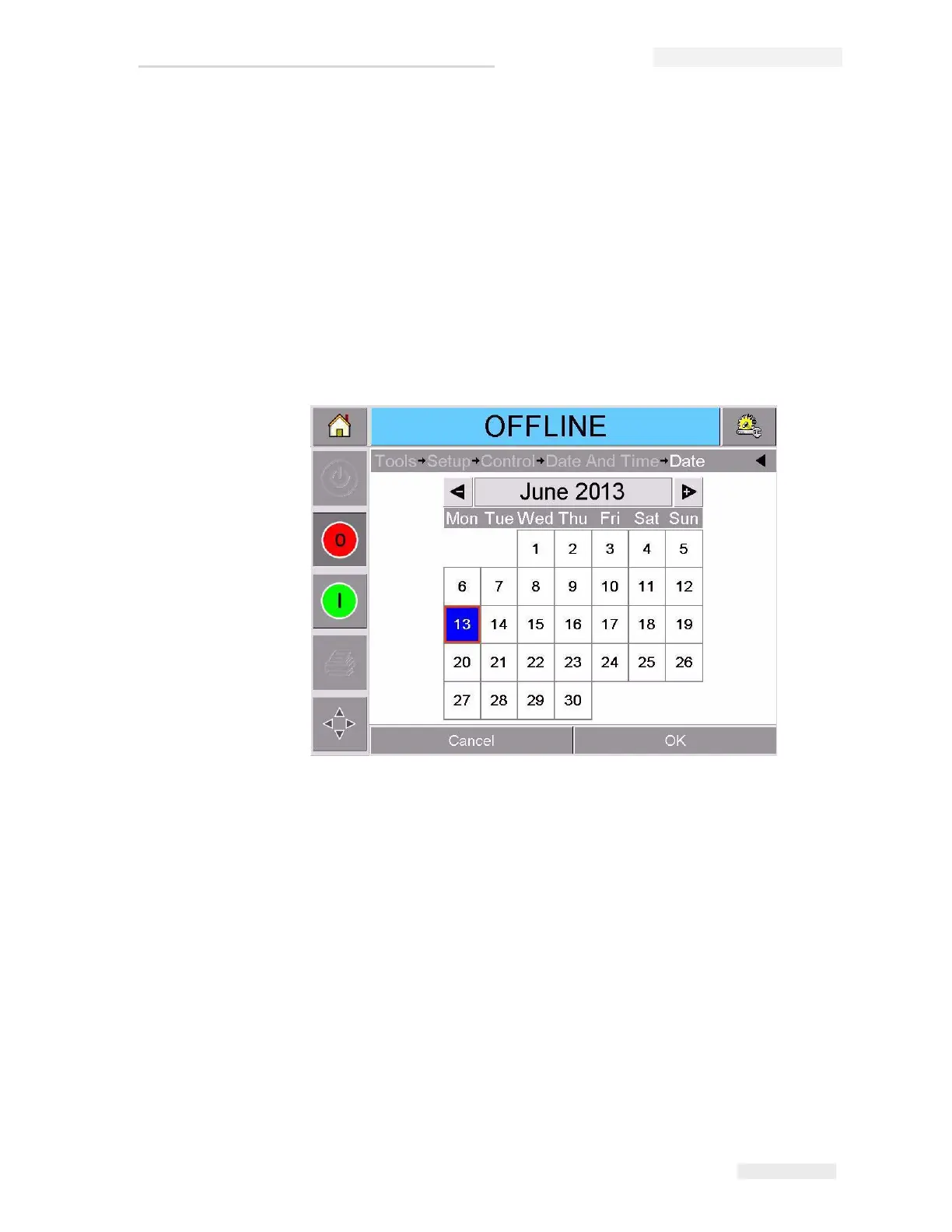 5 Touch Date to set the Date, and the calendar page will appear, as