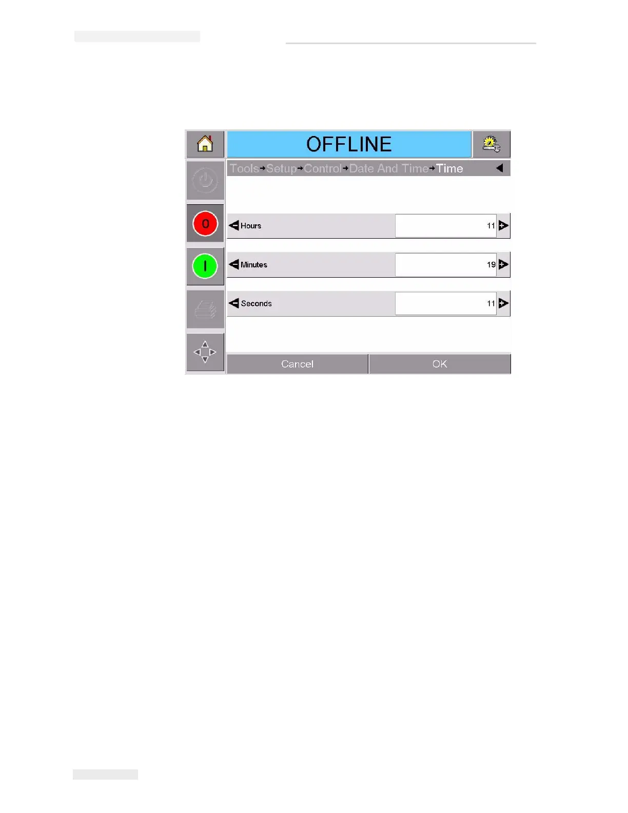 9 Touch Time to set the time. The time set page appears, as shown in