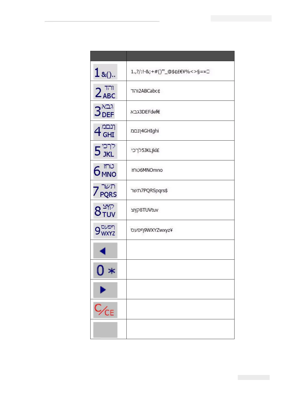 Table 4-3: Alphanumeric Keypad Keys - Hebrew