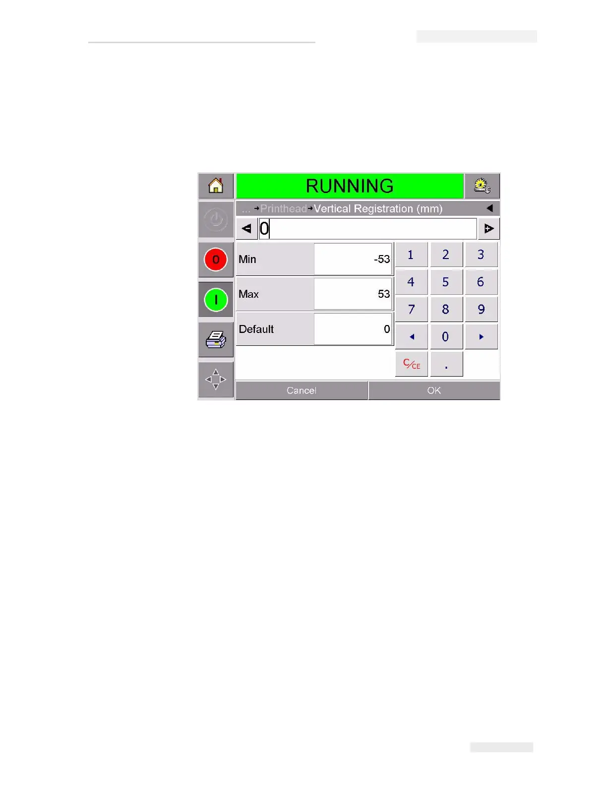 • Touch the Min, Max, or Default buttons to select the minimum,