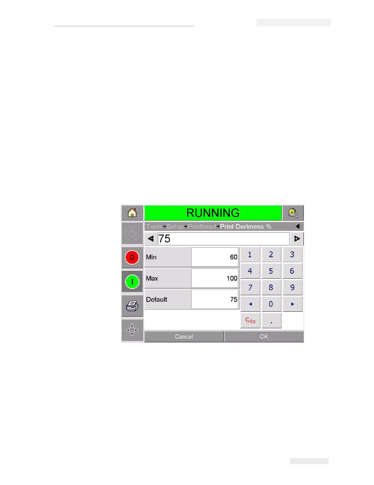 • Touch on the Min, Max, or Default buttons to select the minimum,