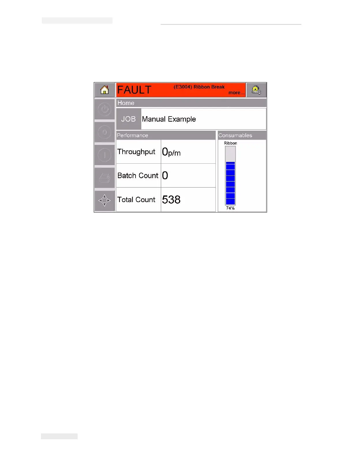 display the red FAULT banner with the message Ribbon Break, as shown in