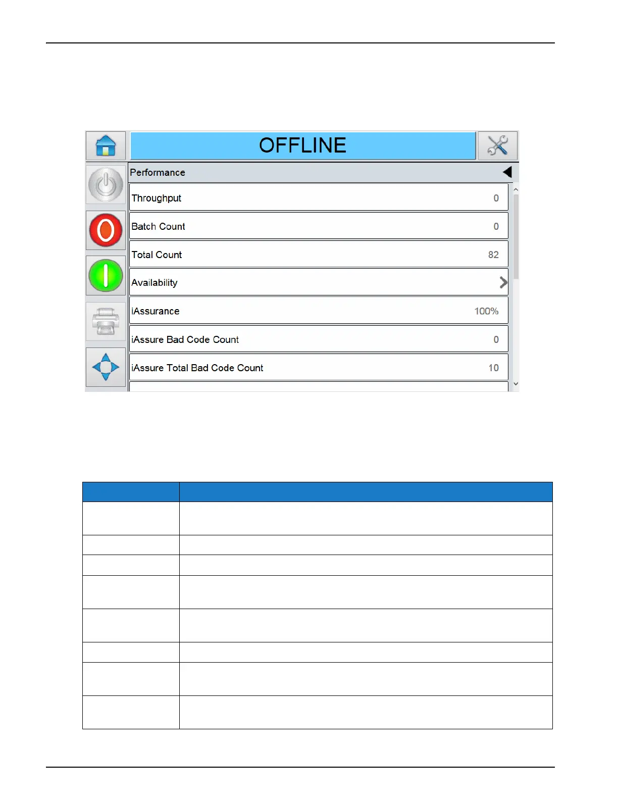 The Performance screen displays the following options as shown in Table 5-4.
