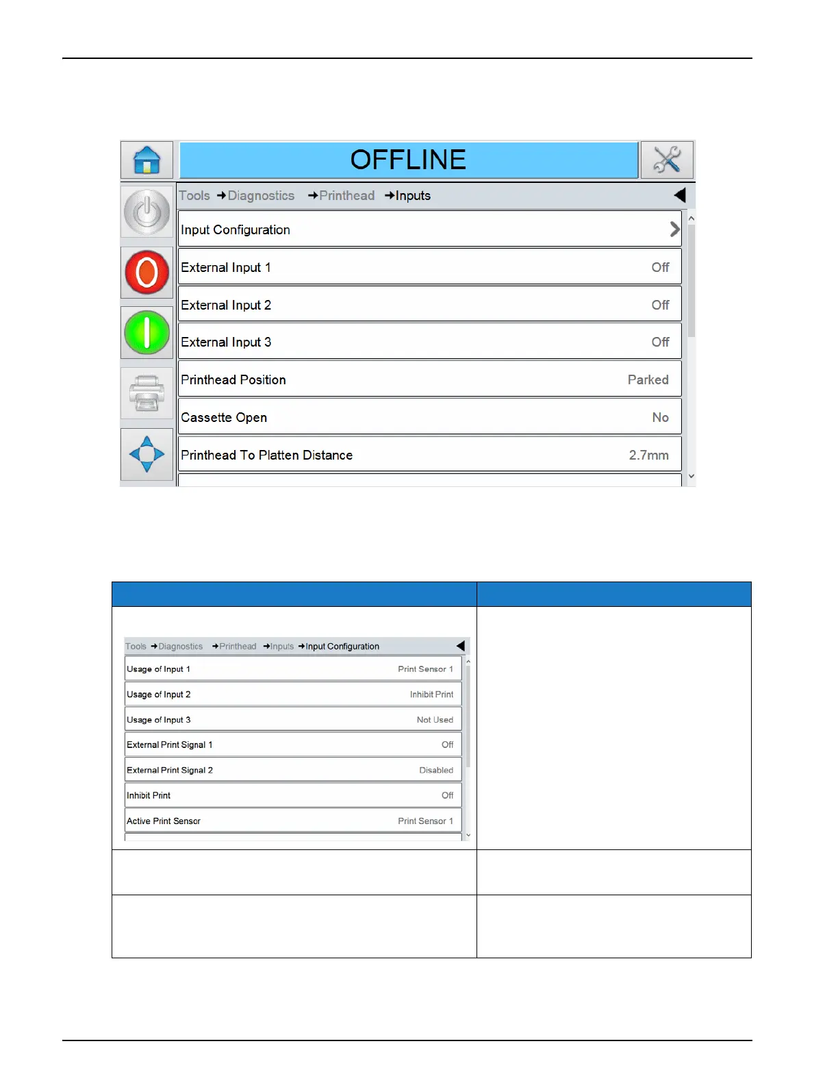 Touch Inputs on the Printhead screen to access the input parameters (Figure 5-8).