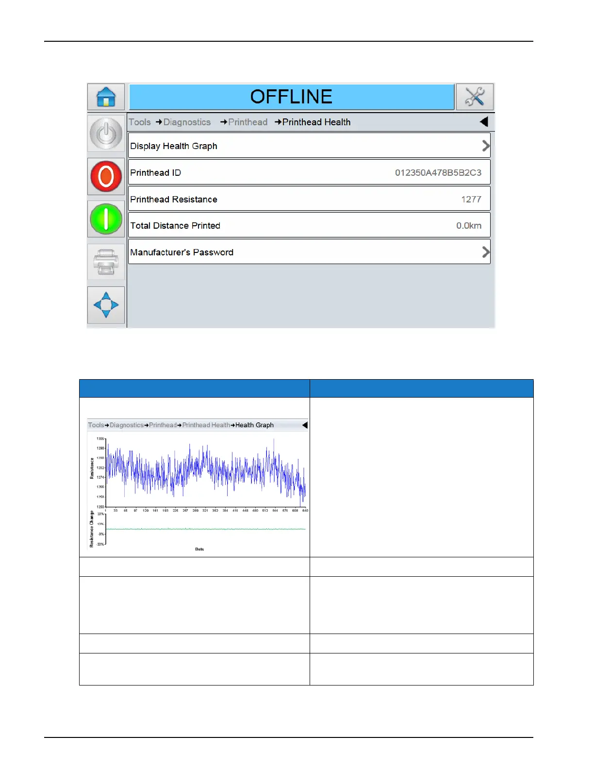 Touch Printhead Health on the Printhead screen to access the printhead health parameters