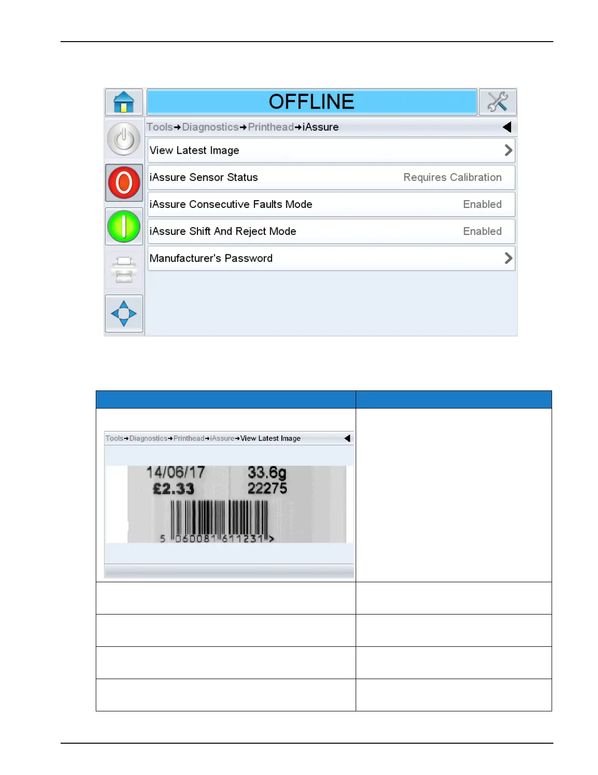 Touch iAssure on the Printhead screen to access the iAssure parameters (Figure 5-12).