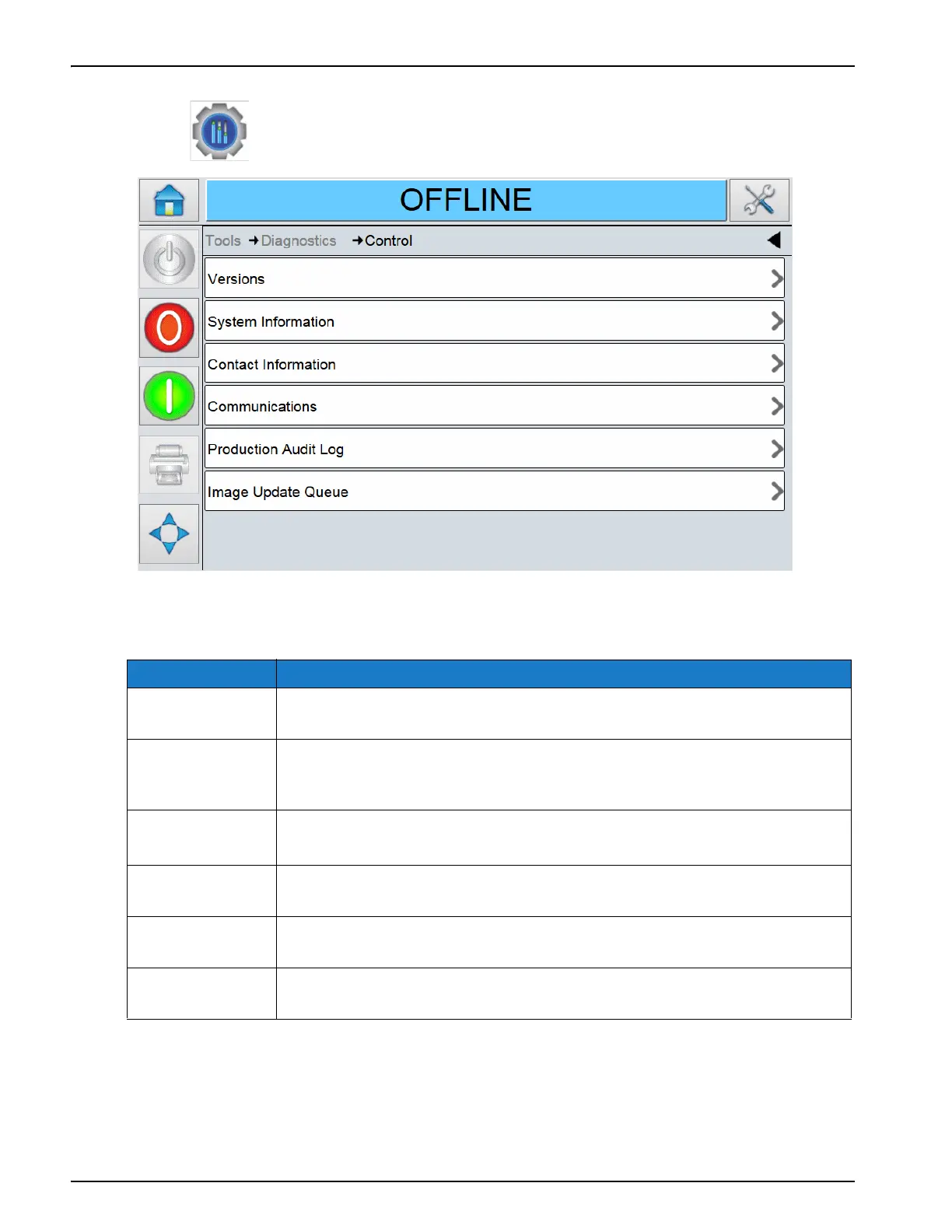 Touch on the Diagnostics screen to access the control parameters (Figure 5-23).