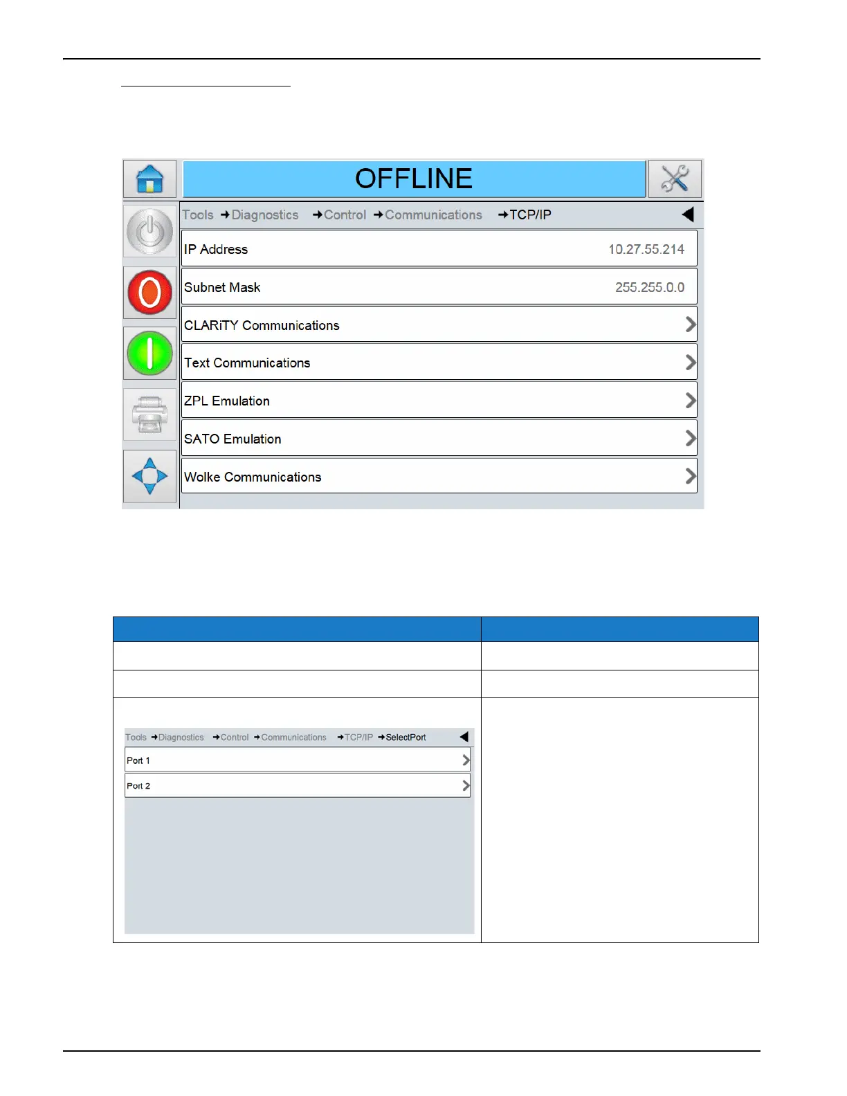 Touch TCP/IP on the Communications screen to access the parameters (Figure 5-29).