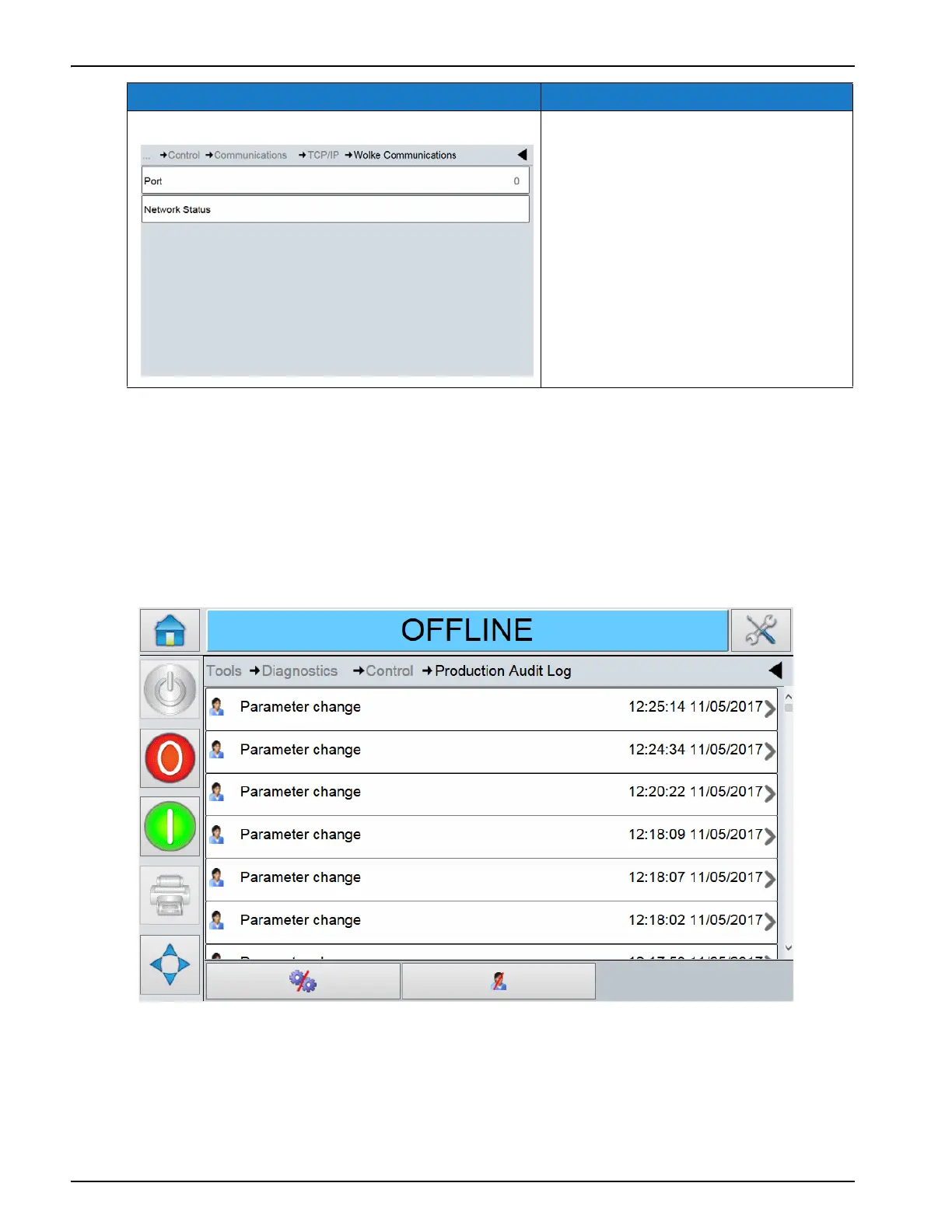 Touch Production Audit Log on the Control screen to view the parameters (Figure 5-30).